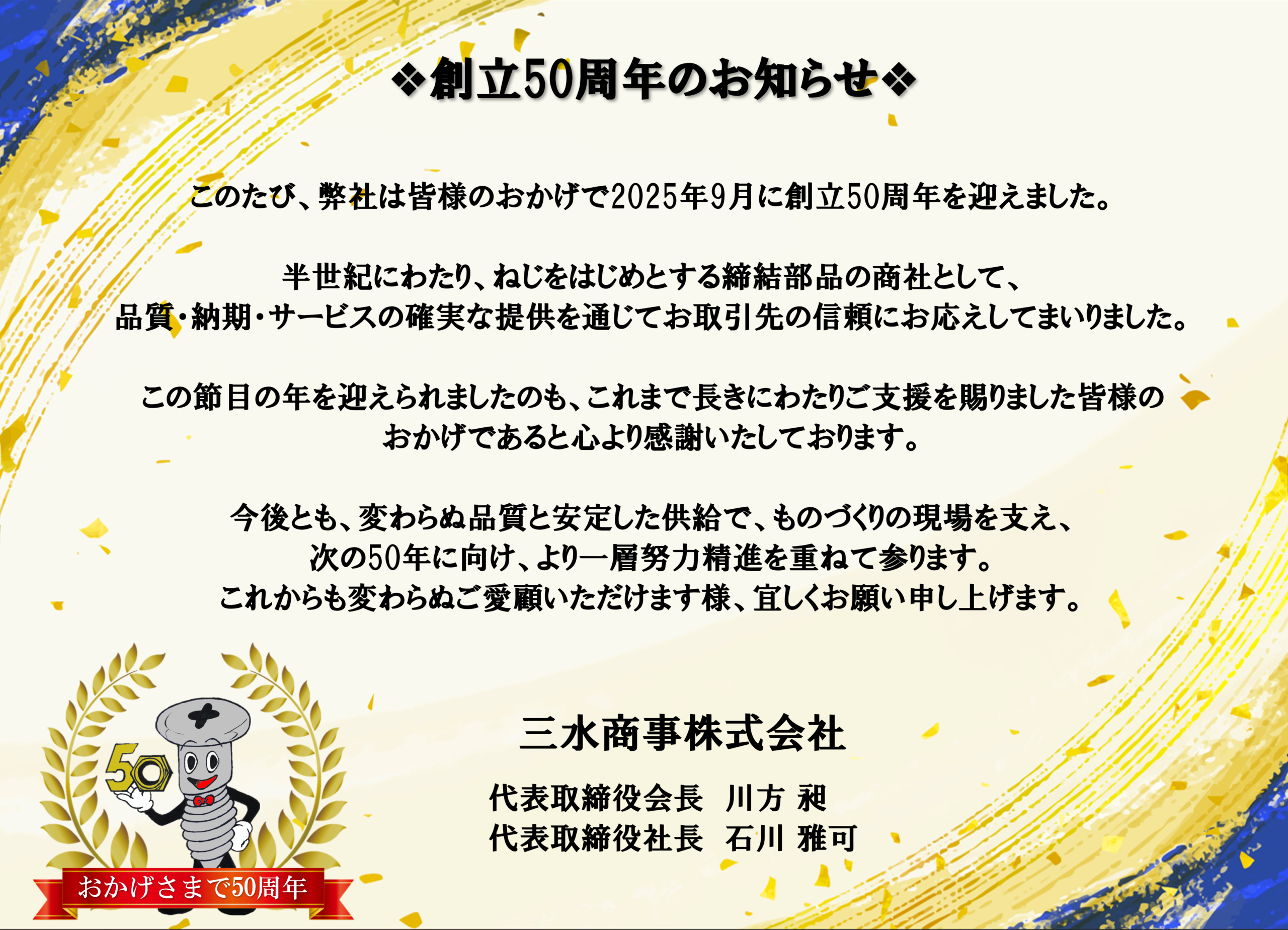 創立50周年のご挨拶 - 三水商事株式会社